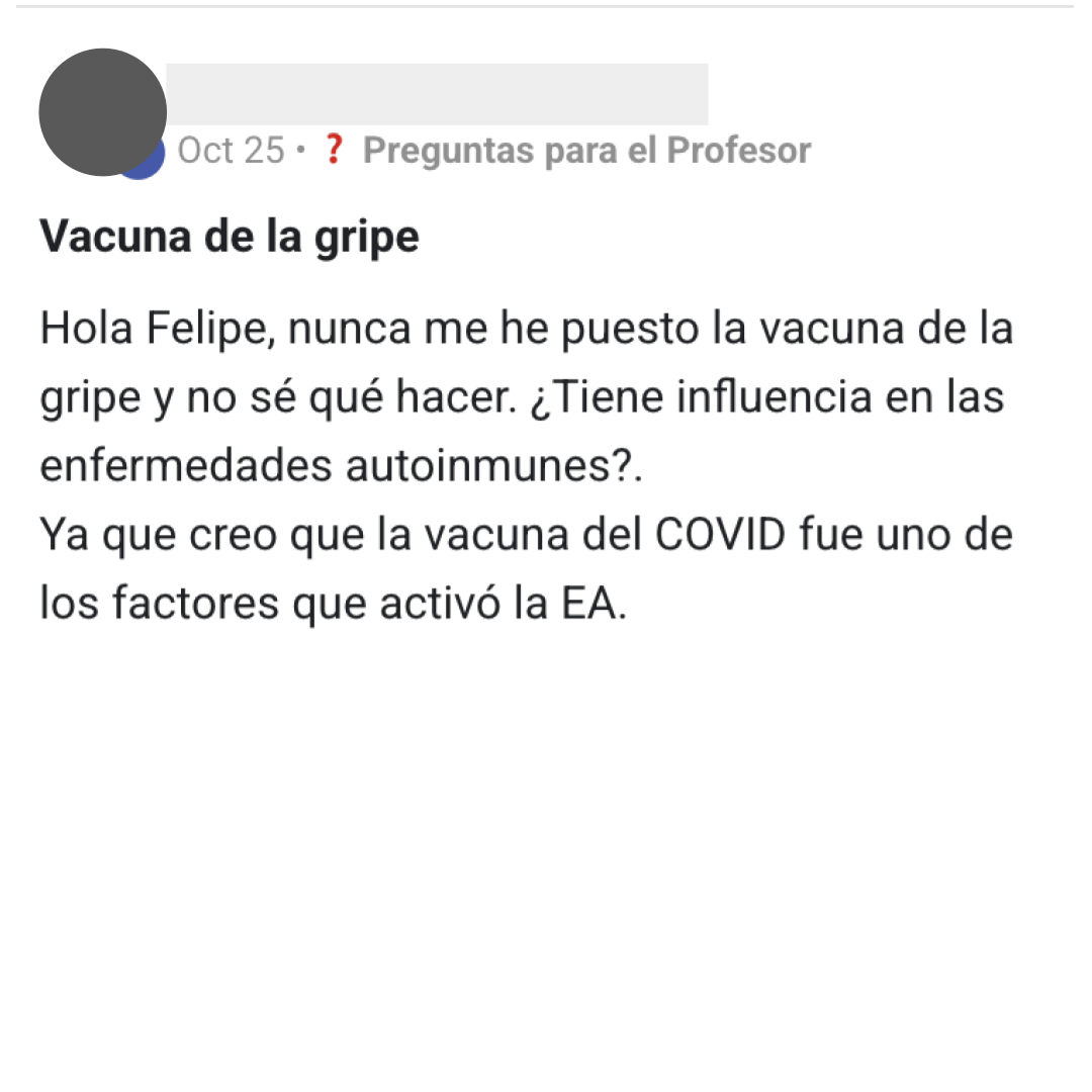*Todas las preguntas pertenecen a mensajes respondidos por el Prof. Felipe Hernández a miembros de la comunidad, pero no mostramos su nombre por razones de privacidad.
