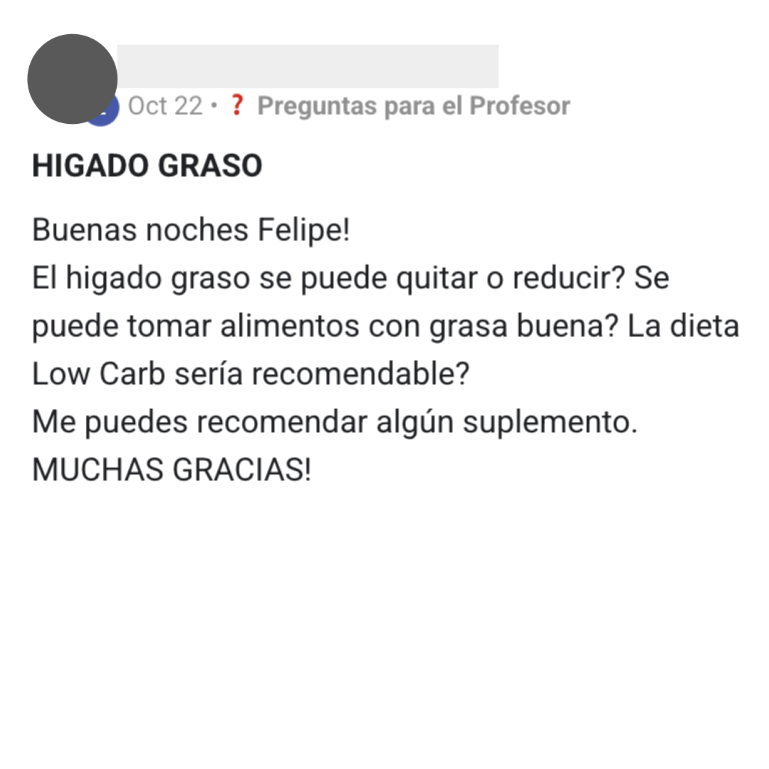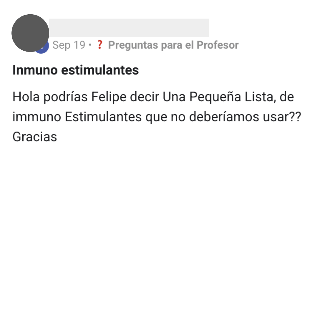 Con tu cuota mensual compras todo esto: Acceso a preguntar directamente al Prof. Felipe, directos de preguntas y respuestas, sesiones grabadas que no se publican en ningún otro lugar, clases maestras, recursos descargables, foros moderados con otras personas en tu misma situación y descuentos en consultas y productos recomendados en los protocolos de Felipe.